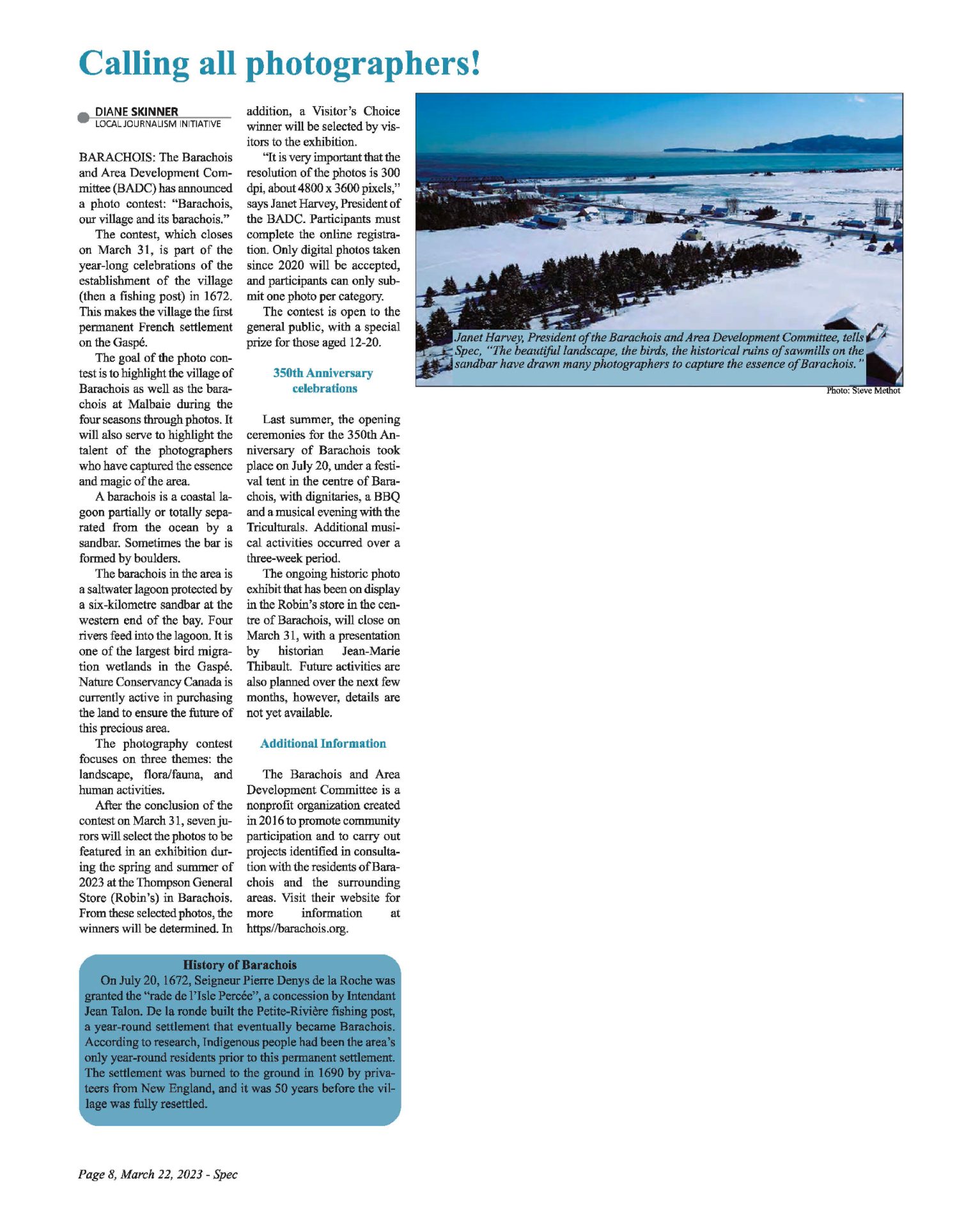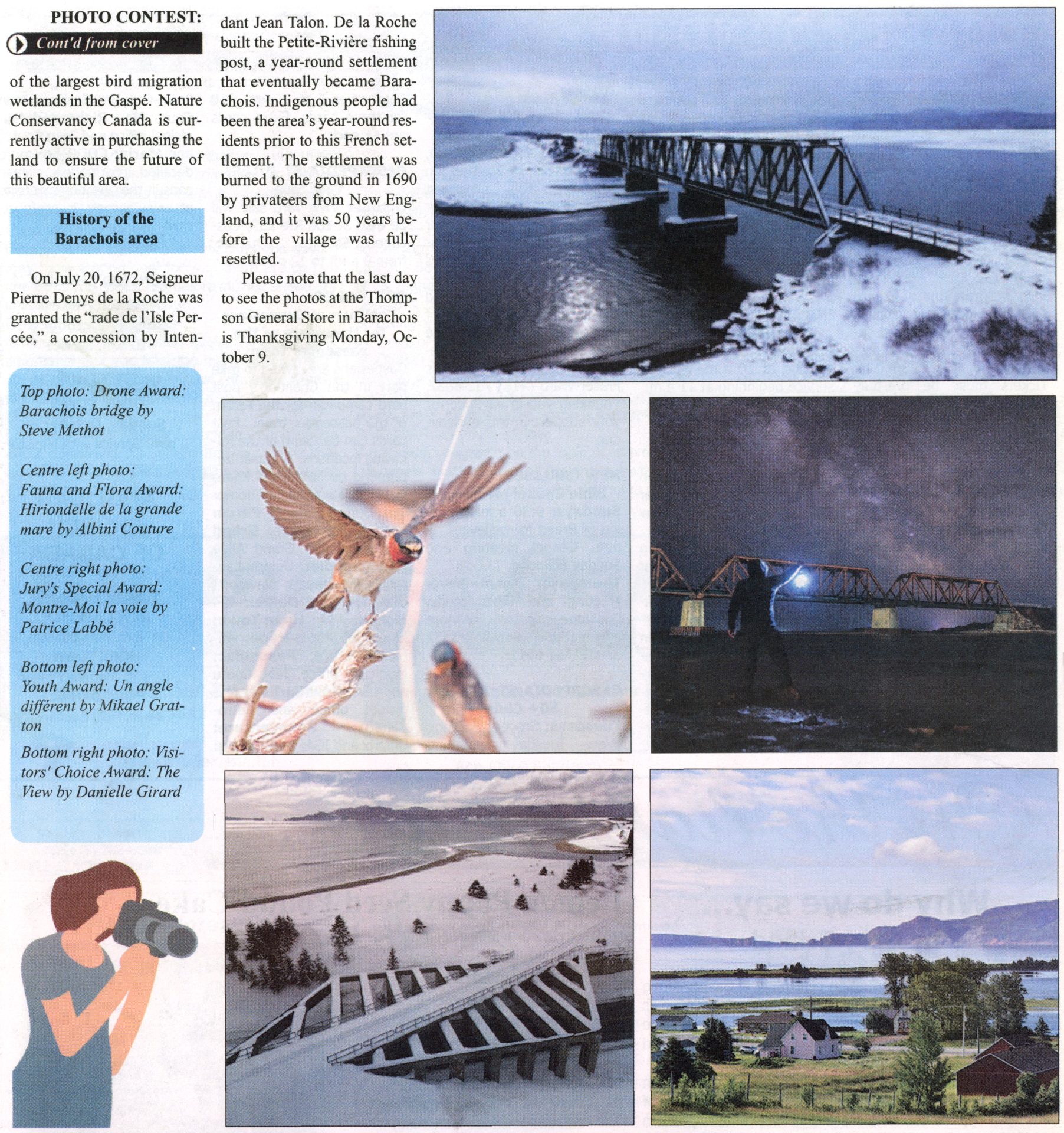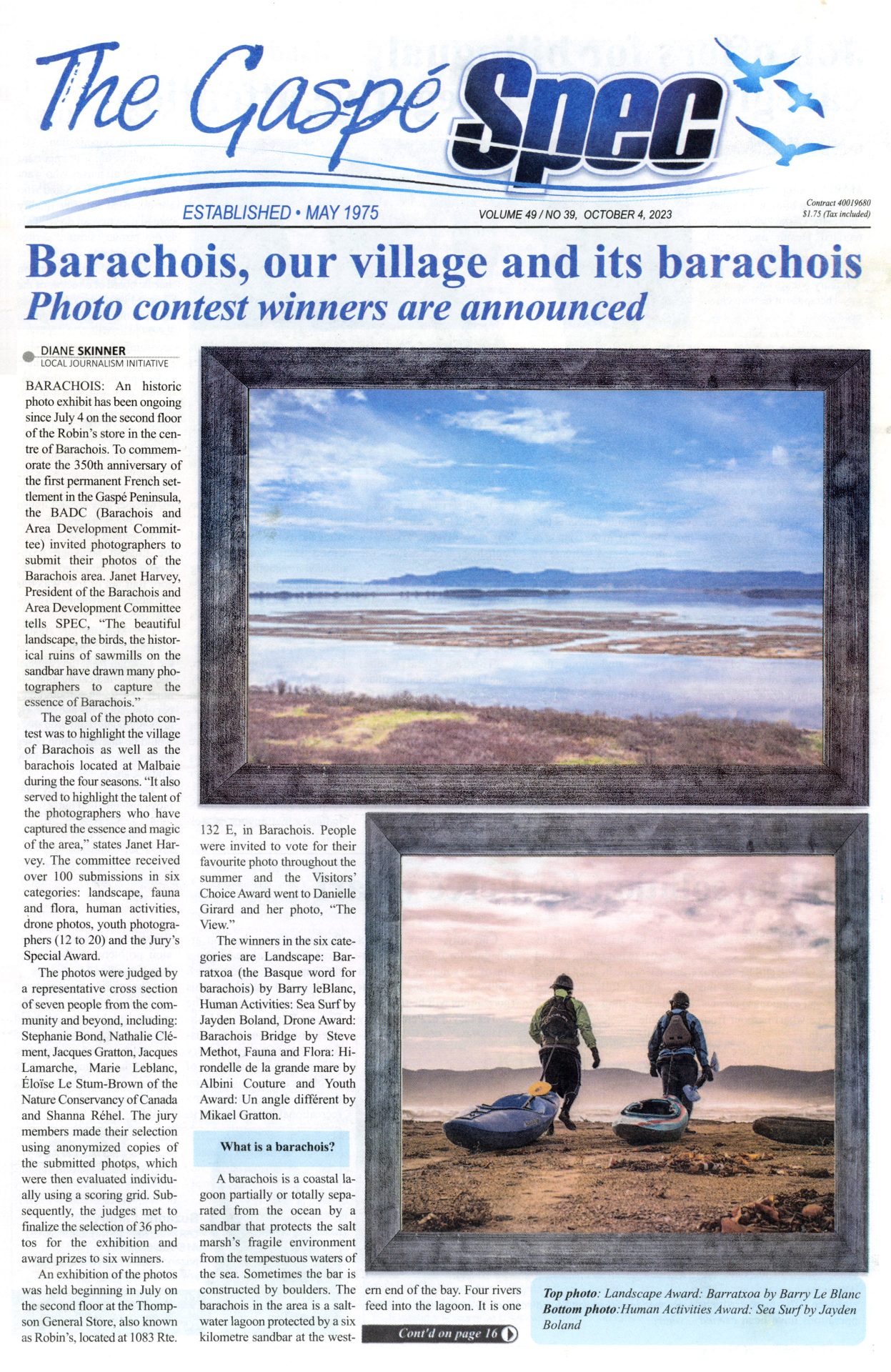 In early 2023, BADC organized a photo contest entitled Barachois, our village and its barachois. The photos selected by the jury were exhibited during the summer of 2023 on the second floor of the Thompson General Store (Robin’s) in Barachois.