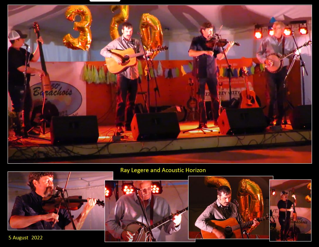 August 5, 2022: Performance by the famous bluegrass band Ray Legere and Acoustic Horizon, from Nova Scotia. The next day, the band led a Kitchen Party style activity for a few hours with musicians from Barachois and the surrounding area.